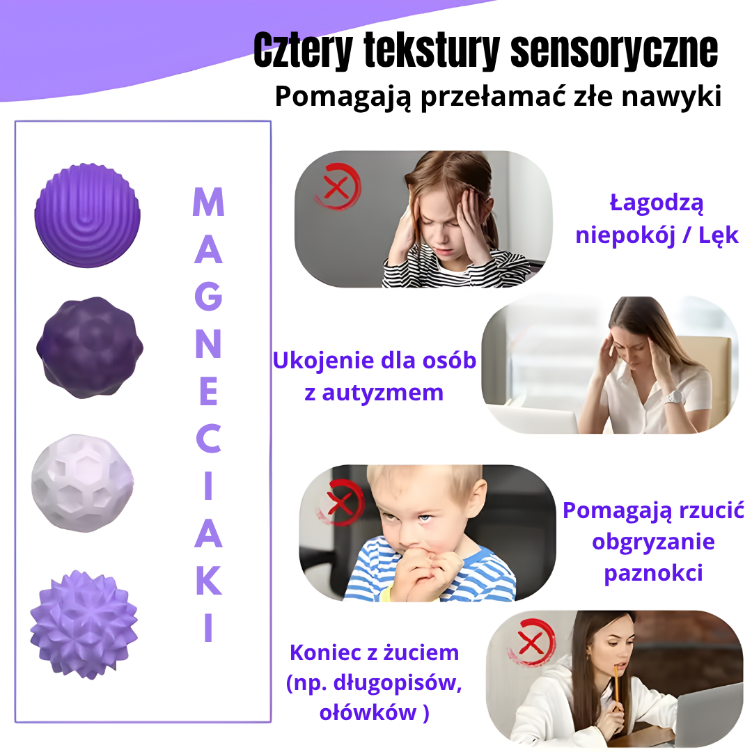 Badanych widzi Redukcja stresu –magneciaki działają uspokajająco, pomagając w odprężeniu i rozładowaniu napięcia.